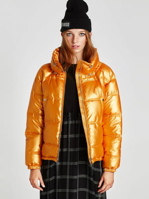 Doudoune matelassée en coloris orange irisé avec col montant de Zara