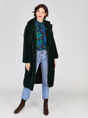 Manteau long en fausse fourrure vert canard de Tara Jarmon