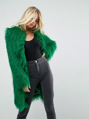 Manteau mi-long en fausse fourrure en coloris vert très lumineux de Asos