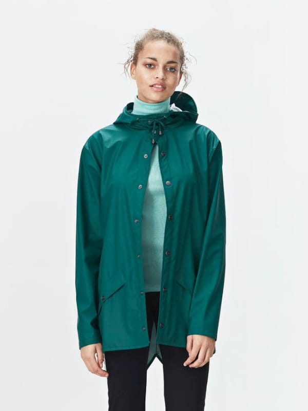 Veste verte en matière résistante a l'eau à capuche de Rains