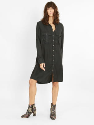 Robe chemise gris foncé avec boutons dorés de Pimkie