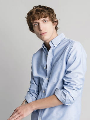 Chemise classique en oxford italien en coloris bleu ciel avec col légèrement arrondi de Officine Générale
