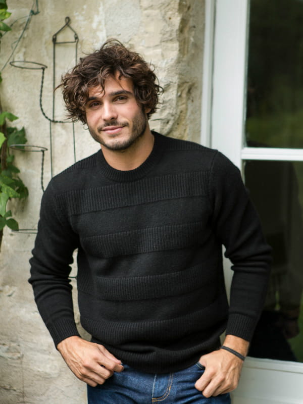 Pull noir en laine de yak et mérinos avec détails de rayures et coupe droite de Cuisse de grenouille