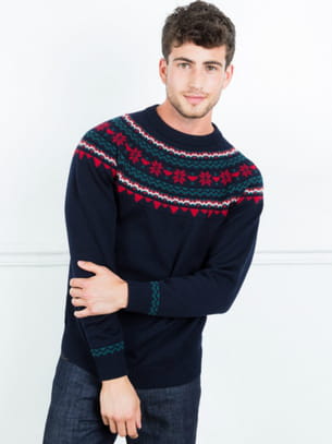 Pull de Noel en laine bleu marine avec motif guirlande de Le Slip Francais