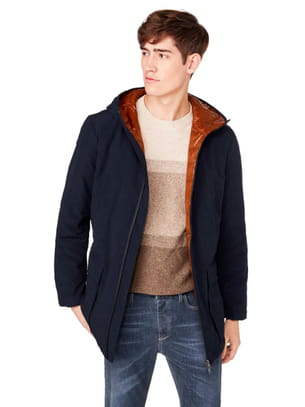 Blouson bleu marine avec doublure en nylon matelassé orange et capuche de Benetton