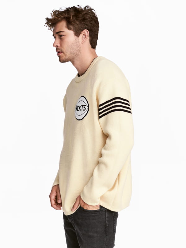 Pull en maille souple avec application sur la poitrine et manches longues à rayures de H&M