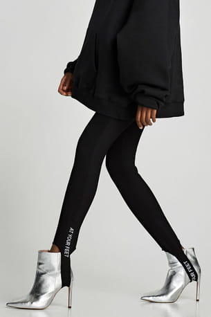 Pantalon streatch noir à message avec élastique sous le pied de Zara