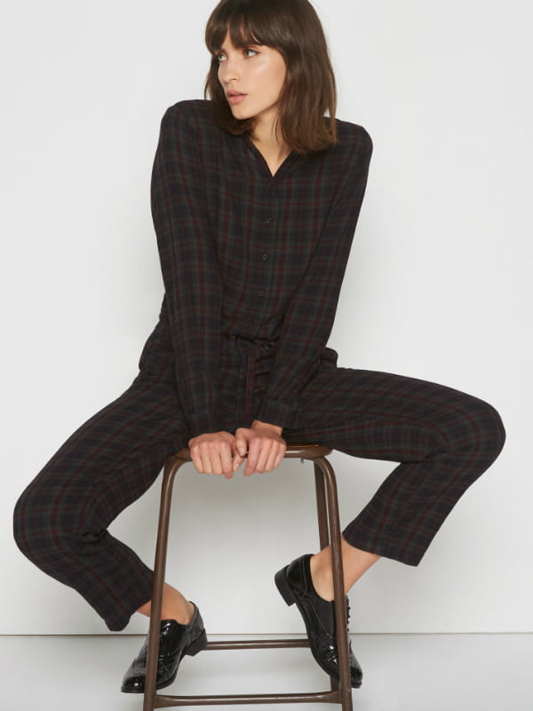 Combinaison marron à carreaux écossais avec ceinture à la taille de Monoprix