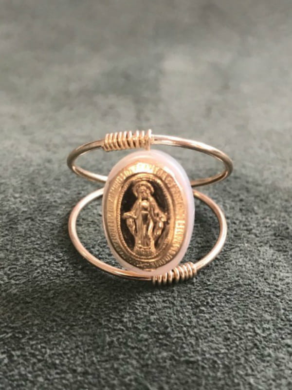 Bague plaqué or avec médaille sur nacre de Nynybird