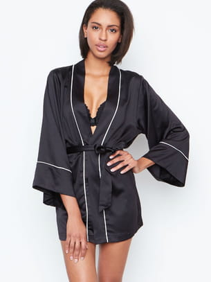 Kimono en satin noir à liseré blanc de Etam
