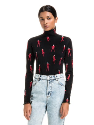 Body à manches longues avec col montant en coloris noir avec imprimé motarde de Bimba y Lola