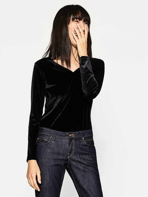 Body imitation velours à encolure en V et manches longues en coloris noir de Esprit