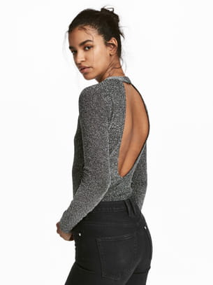 Body en jersey enrichi de fils scintillants avec manches longues et dos nu en coloris gris de H&M