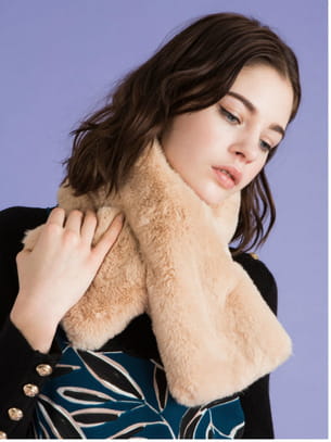 Écharpe court ras du cou en fausse fourrure en coloris nude de Suncoo