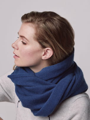 Snood tricoté en 100% cachemire doux et confortable en coloris bleu Niagara de Eric Bompard