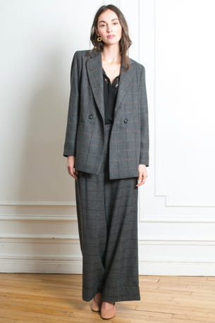 Ensemble veste et pantalon ample à carreaux gris de Opullence