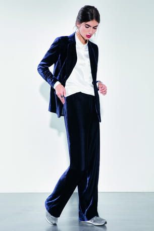 Ensemble veste et pantalon fluides en velours bleu marine de C&A