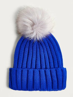 Bonnet bleu côtelé avec pompon de Urban Outfitters