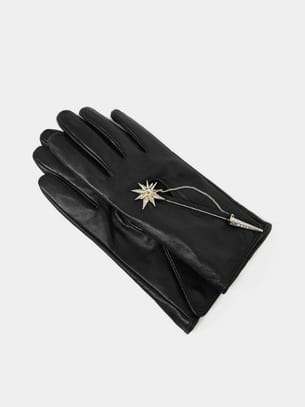 Gants noirs en cuir à doublure soie avec ouverture en goutte d'eau de Uterqüe