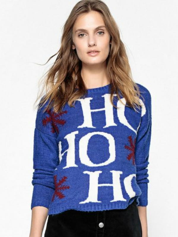 Pull bleu à grosse maille, imprimé de lettres blanches de La Redoute