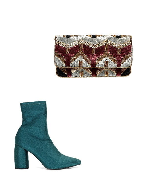 Bottines en satin canard de & Other Stories et pochette sequins de Becksöndergaard chez Smallable