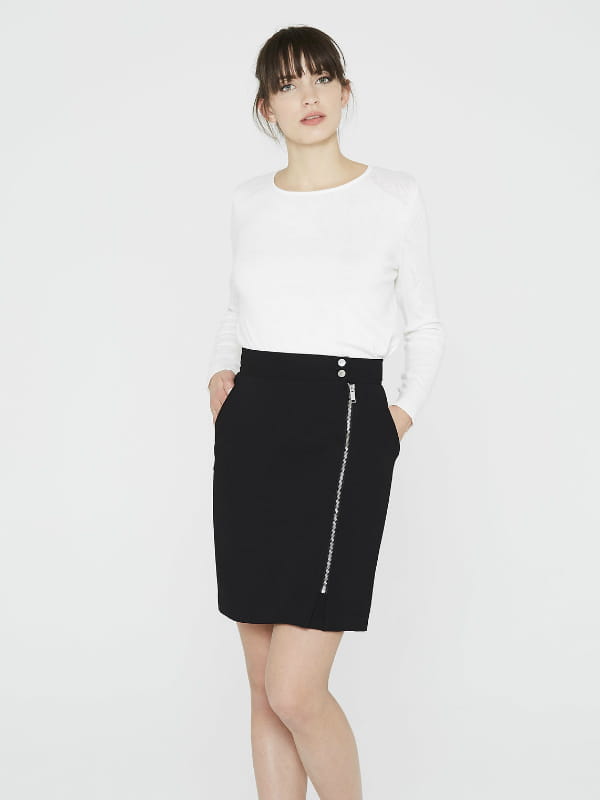 Jupe courte en crêpe avec long zip fantaisie sur le devant en coloris noir de IKKS