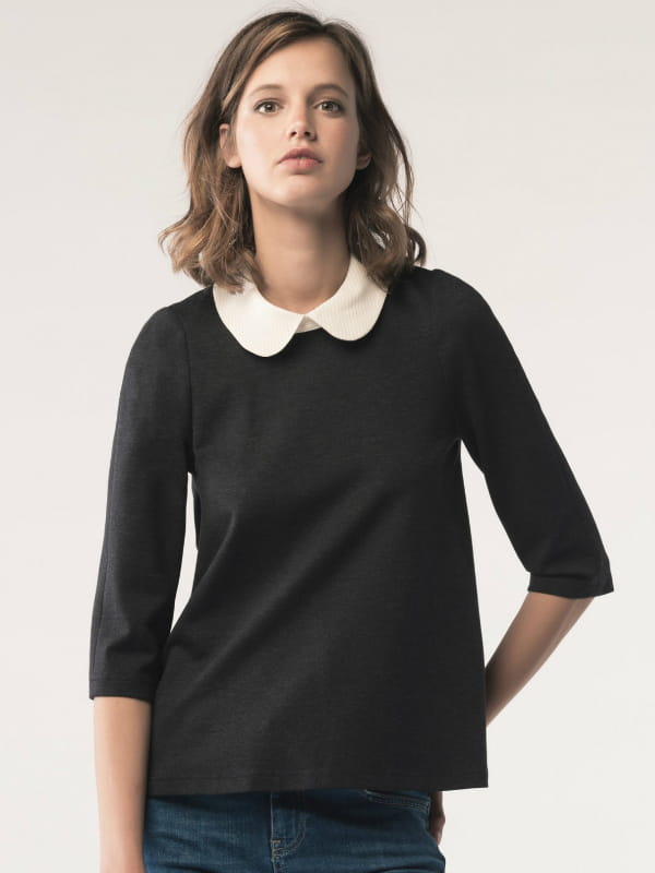 Blouse à manches longues avec col claudine minimaliste en coloris bleu marine de Pablo