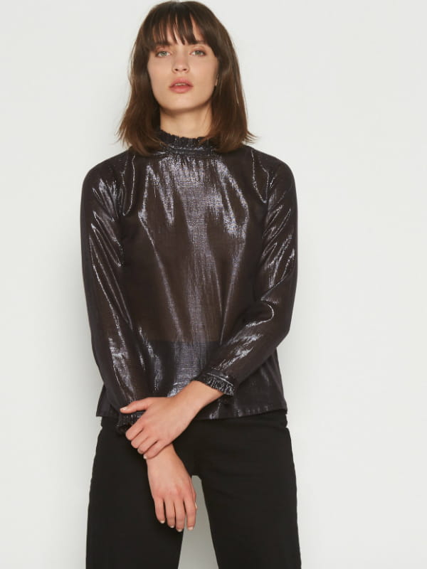 Top à manches longues en lurex argenté avec petit col froncé de Monoprix