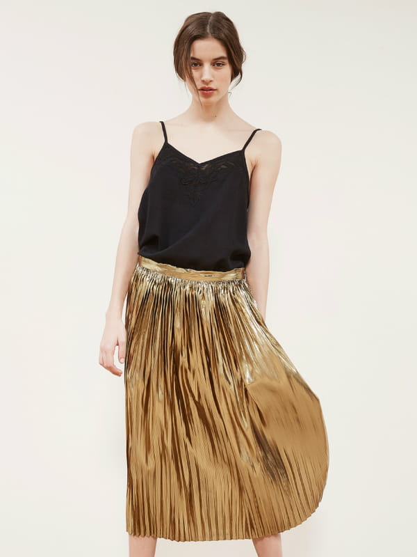 Jupe midi plissée fluide et ample avec reflets dorés de Mes Demoiselles