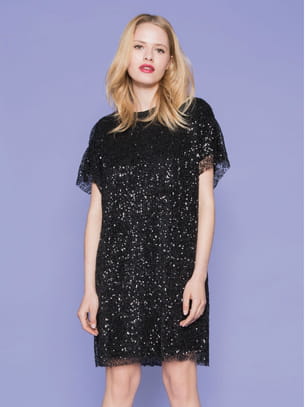 Robe courte brodée de sequins avec courte encolure et manches courtes évasées façon kimono de Suncoo