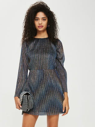 Robe courte évasée recouverte de paillettes avec effet plissé de Topshop
