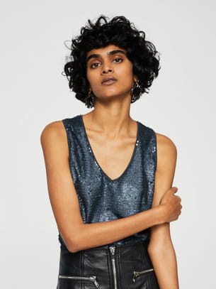 Débardeur à col rond recouvert de sequins brillants en coloris bleu marine de Mango
