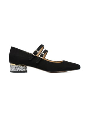 Babies en cuir velours noir avec petit talon pailleté de 3 cm et double bride de Made by Sarenza