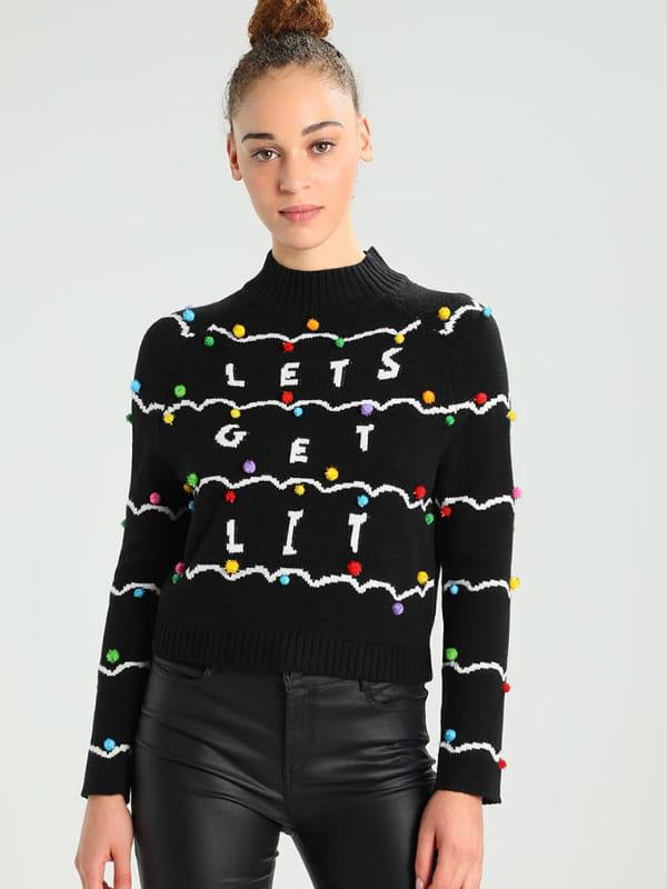 Pull de Noël avec inscription "Let's get lit" et pompons colorés façon guirlande de Missguided