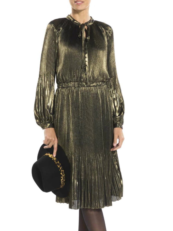 Robe midi lamée plissée à lavallière de Derhy