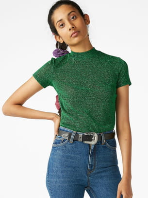 T shirt  manches courtes irisé vert de Monki
