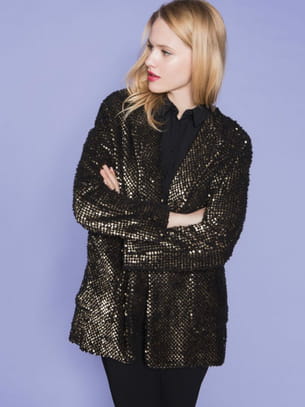 Manteau coupe garçonne paillet noir et or de Suncoo