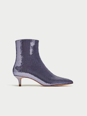 Bottines à talon paillette de 5 cm en coloris lavande avec talon kitten de Zara