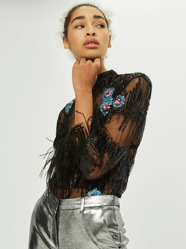 Blouse fantaisie transparente avec plumes de paon au niveau des manches trois quarts de Topshop