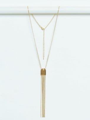 Collier avec fine chaîne métallique dorée et pendentif composé d'une cascade de chaînettes de Kiabi