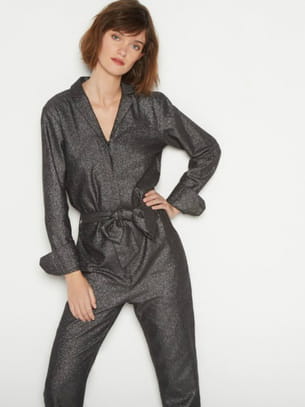 Combinaison pantalon brillante en coloris gris de Monoprix
