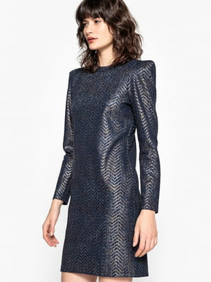 Robe courte avec épaules géométriques, manches longues et imprimé chevrons à effet brillant de La Redoute