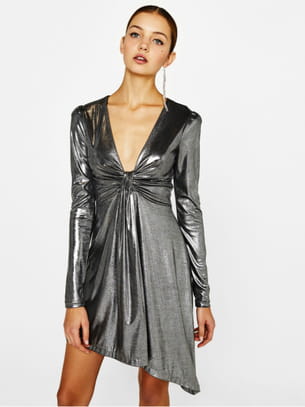 Robe asymétrique avec nœud et décolleté en V en coloris argenté de Bershka