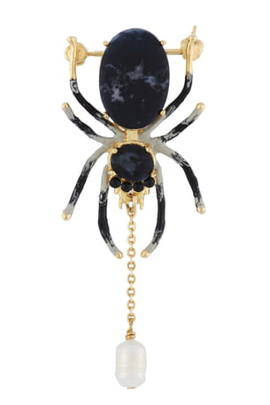 Vous avez la phobie des insectes ? Passez votre chemin ! Quant aux autres, en quête de bijoux décalés un brin "dark", vous allez adorer cette collection. Sortant totalement de sa zone de confort, des fleurs aux couleurs gourmandes, danseuses et autres petits animaux régressifs - ADN de la marque -, la maison de bijoux française explore de nouvelles sphères. Boucles d'oreilles scarabées, collier abeille ou broche libellule, Les Néréides nous embarque dans l'univers singulier de ces petits êtres vivants aux multiples pattes, que l'on préfère côtoyer en version laiton doré et pierreries que dans la nature. Quant à la broche araignée, elle nous réconcilie avec les arachnides jusqu'à la laisser tisser sa toile sur nos vestes !