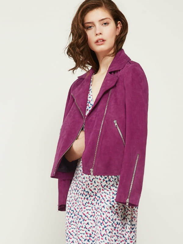 Veste en cuir suede en coloris pivoine de Comptoir des Cotonniers