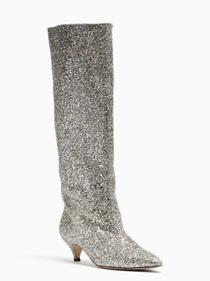 Bottes pailletées et à petit talon de 3,8 cm en coloris argent de kate spade new york