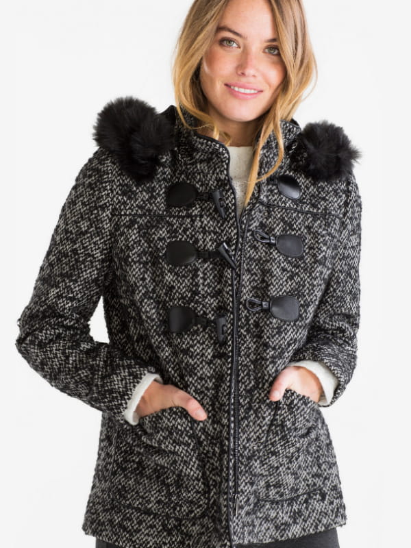 Manteau en laine mélangée texturée avec capuche amovible en fausse fourrure et fermeture brandebourg de C&A