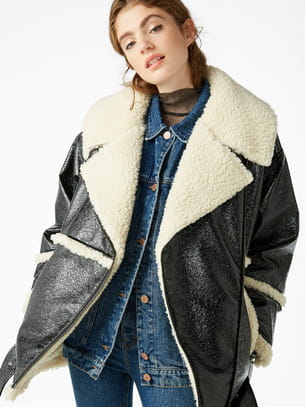Veste aviateur oversize en simili cuir enduit et doublée en polyester façon peau de mouton lainée de Monki