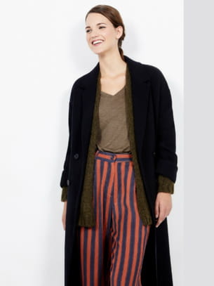 Pantalon en coupe droite et taille haute à imprimé à rayures en coloris orange et bleu marine de American Vintage