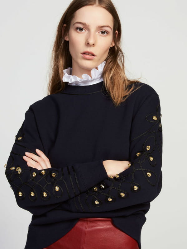 Sweat col rond et manches longues avec manches brodées recouvertes de strass de Sandro